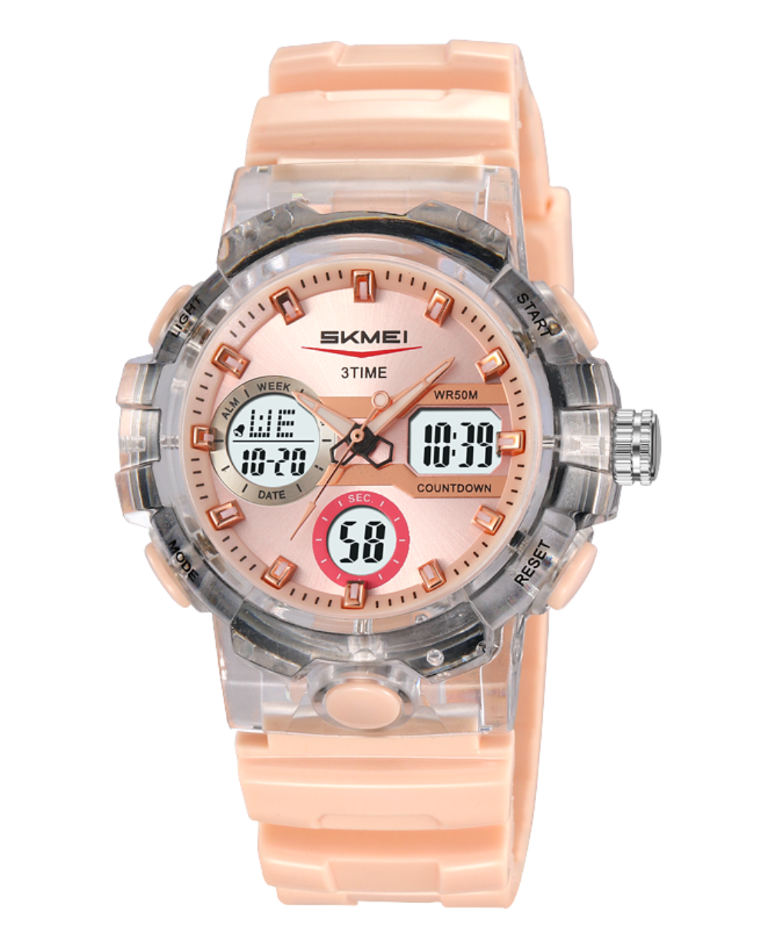 El SKMEI-2386 ofrece la combinación perfecta de tecnología analógica y digital gracias a su máquina dual. Integra funciones esenciales como alarma, cronómetro, temporizador, doble hora y fecha para un manejo eficiente del tiempo. Su resistencia al agua de hasta 50 metros lo hace apto para piscina y buceo recreativo, mientras que la iluminación LED permite una lectura clara en la oscuridad. Con 1 año de garantía, este reloj garantiza precisión, versatilidad y durabilidad para usuarios exigentes.