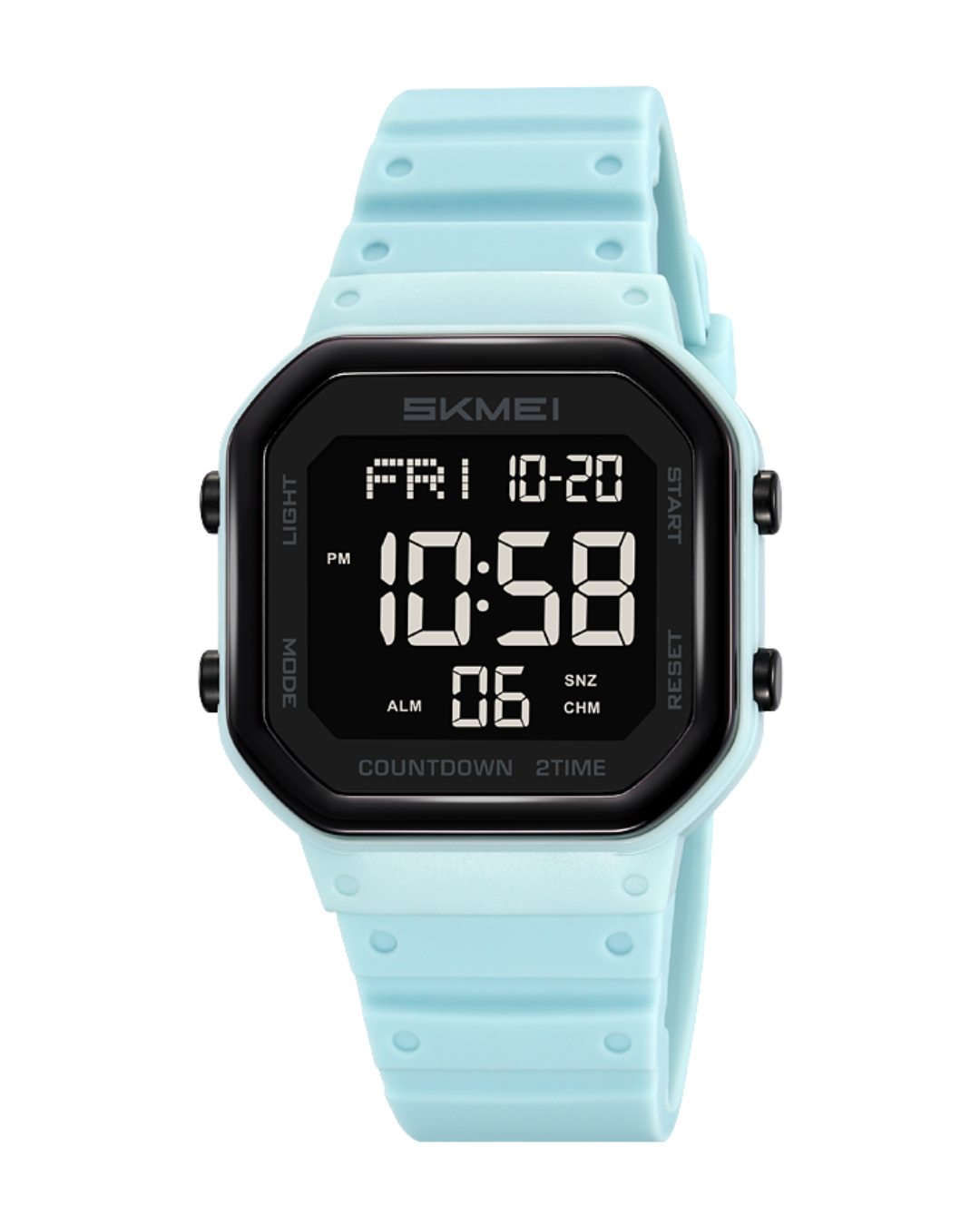 Reloj Skmei 2439 con alarma, cronómetro, doble hora, fecha y temporizador. Sumergible hasta 50 metros, ideal para actividades acuáticas. Cuenta con 1 año de garantía para mayor confianza y durabilidad.